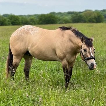 Our Theo, a gentle Buckskin Appaloosa with the cutest spots on his hindquarters. Having joined our family over a year ago as a rescue, Theo has overcome a tumultuous past marked by neglect and abandonment, which makes him more timid and shy. Nonetheless, like many rescue animals, Theo has a deep affection for attention and love. His favorite treats include grain, apple snacks, and he takes great pleasure in chin rubs. Theo also boasts a beautiful mane that flows in the wind, mirroring the beauty of his inner self. With his gentle nature, Theo is poised to provide comfort and support to individuals struggling with anxiety, fear, or loneliness.